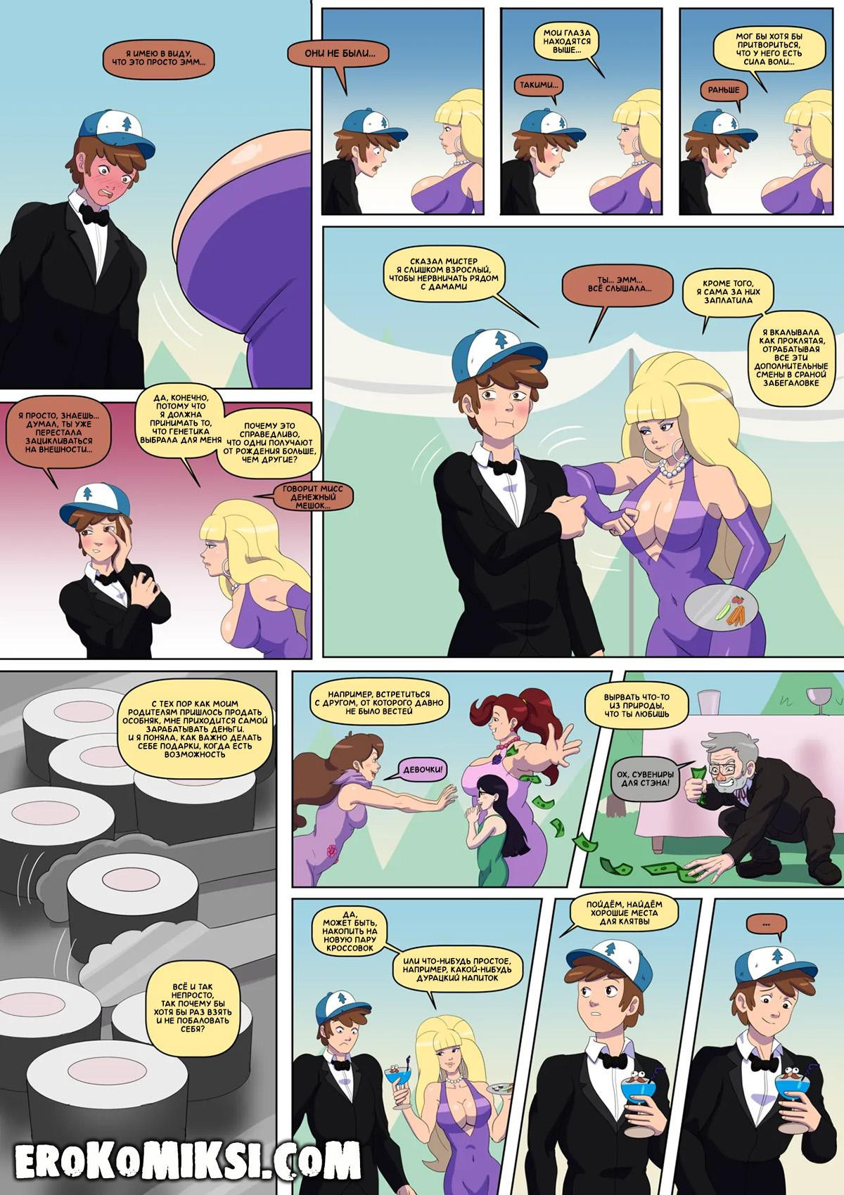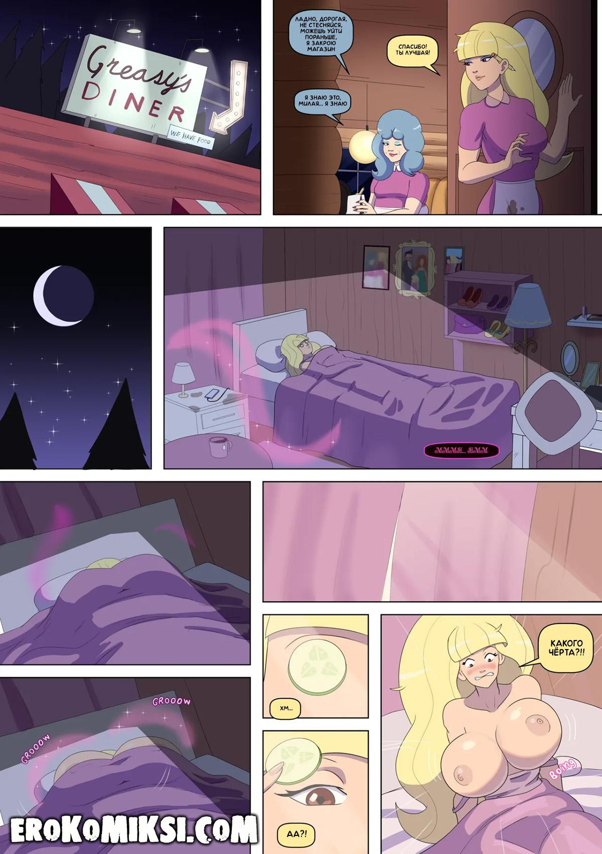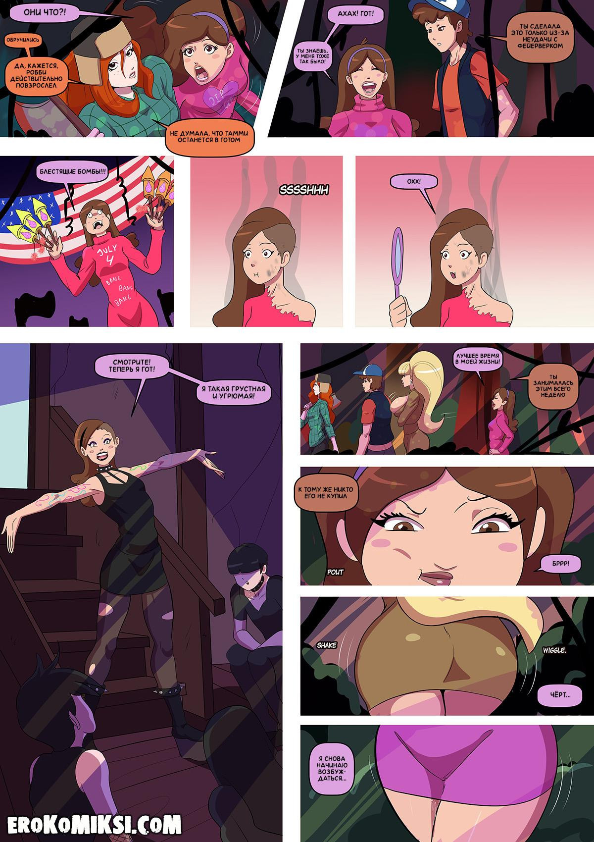 Порно комикс Гравити Фолз. Бимбо Фолз. Спустя много лет, Диппер и Мэйбл приезжают в Гравити Фолз на свадьбу Суса. Там Диппер встречает Пасифику, которая увеличила грудь, и приглашает её на свидание. Ночью, с Пасификой случаются метаморфозы и её грудь значительно увеличивается в размерах, она показывает свои изменения Дипперу, у которого сразу же встаёт член при виде огромных сисек…