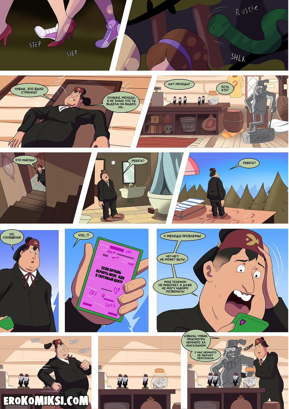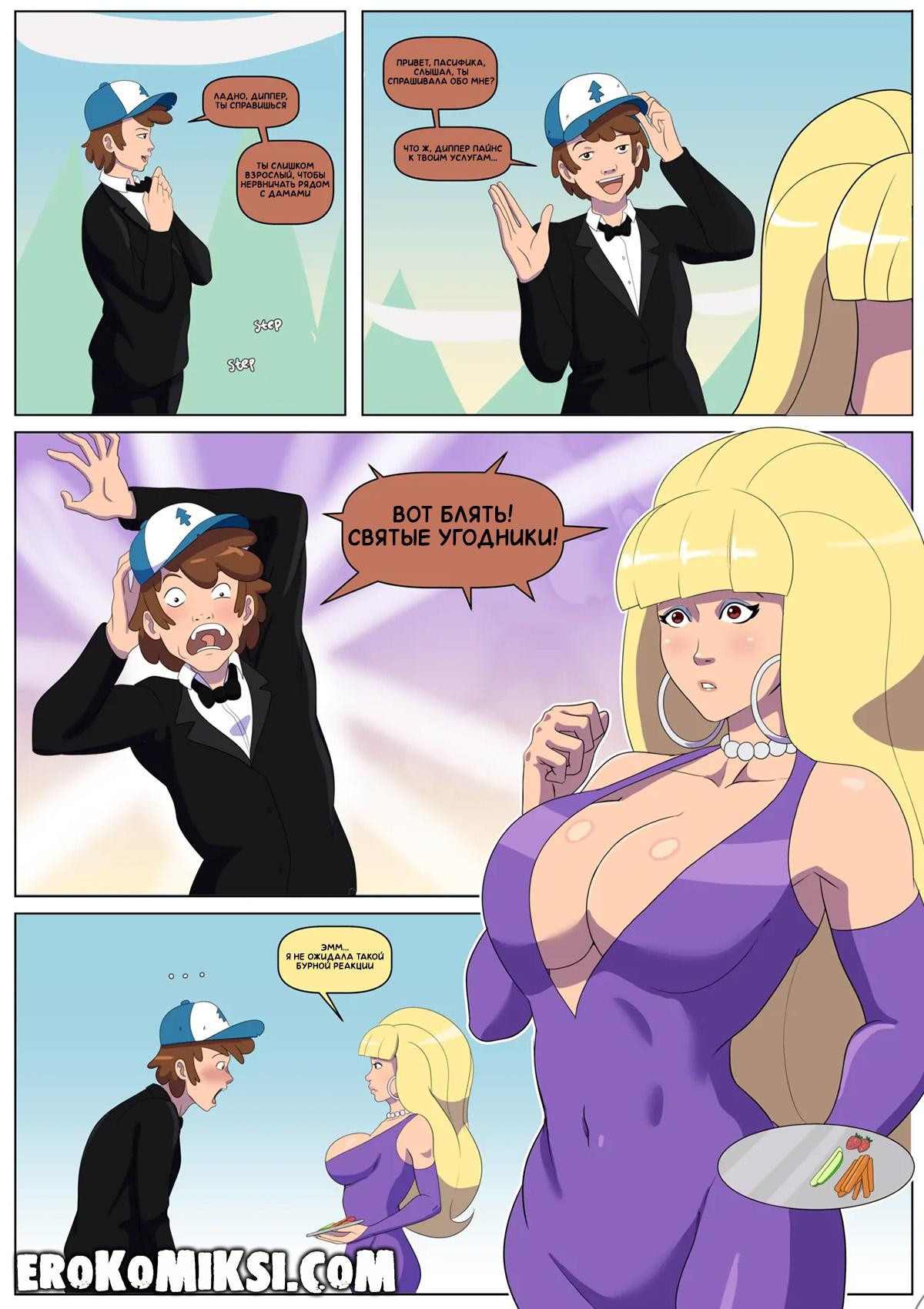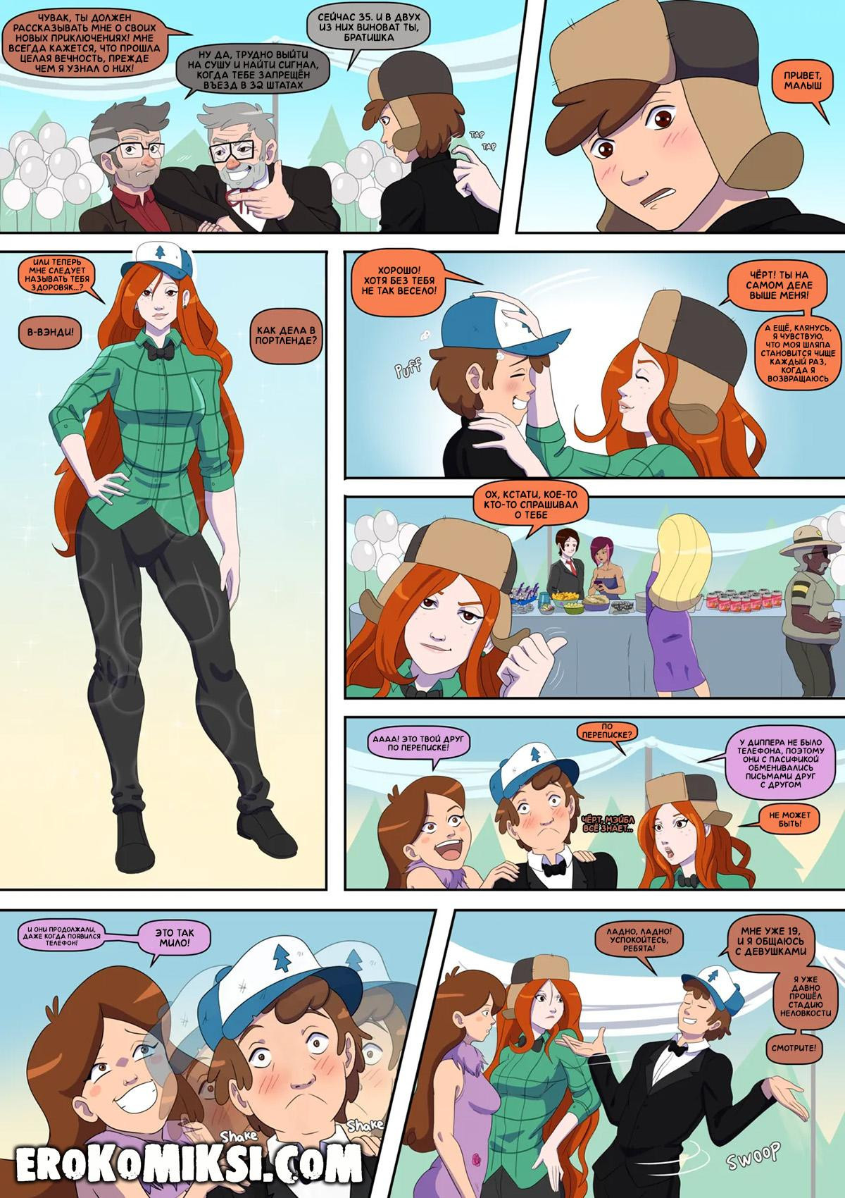 Порно комикс Гравити Фолз. Бимбо Фолз. Спустя много лет, Диппер и Мэйбл приезжают в Гравити Фолз на свадьбу Суса. Там Диппер встречает Пасифику, которая увеличила грудь, и приглашает её на свидание. Ночью, с Пасификой случаются метаморфозы и её грудь значительно увеличивается в размерах, она показывает свои изменения Дипперу, у которого сразу же встаёт член при виде огромных сисек…