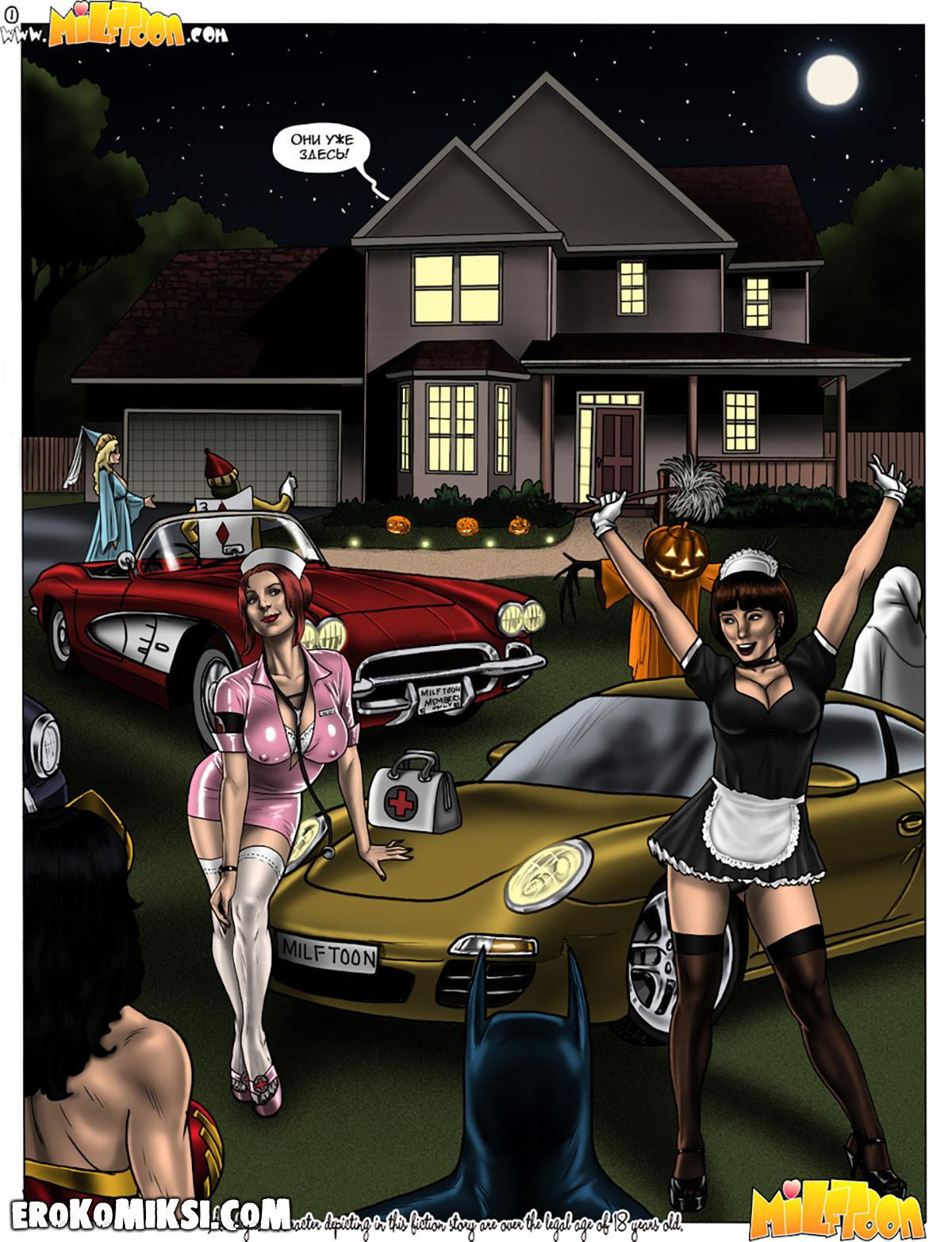 Порно комикс Хэллоуин с шикарными Милфами. Во время Хэллоуина мать Бена заставляет его надеть стрёмный костюм, и его дядя, видя, как как переживает по этому поводу племянник, решает его выручить и отдаёт свой костюм, ещё не зная к каким последствиям это приведёт…
