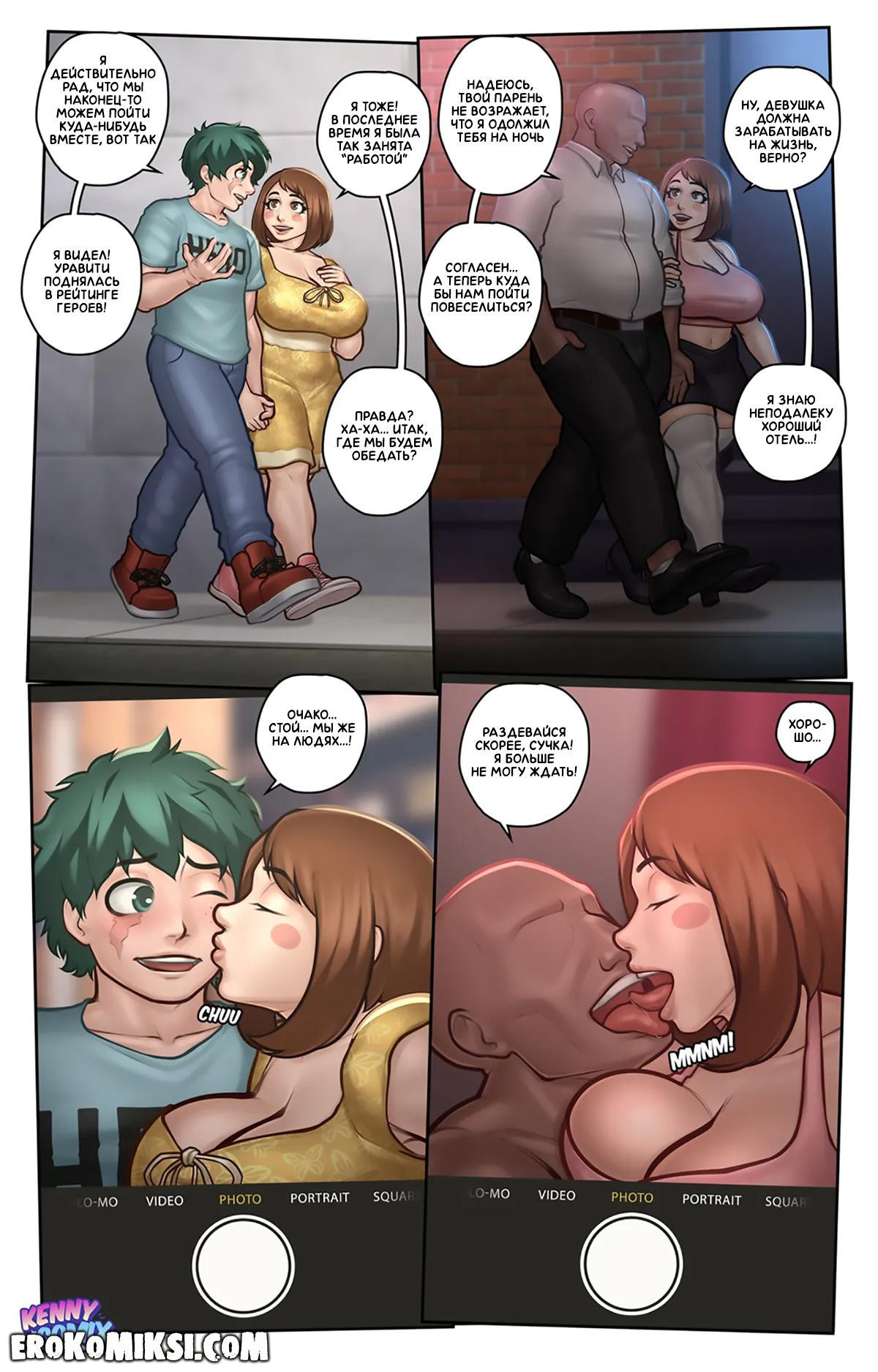 Порно комикс Моя Геройская Академия. Свидание с героями. Для того, чтобы немного подзаработать, героини академии регистрируются в новом приложении для знакомств, и обычные граждане города с радостью пользуются услугами героинь, чтобы как следует потрахаться с сочными красотками после трудового дня…