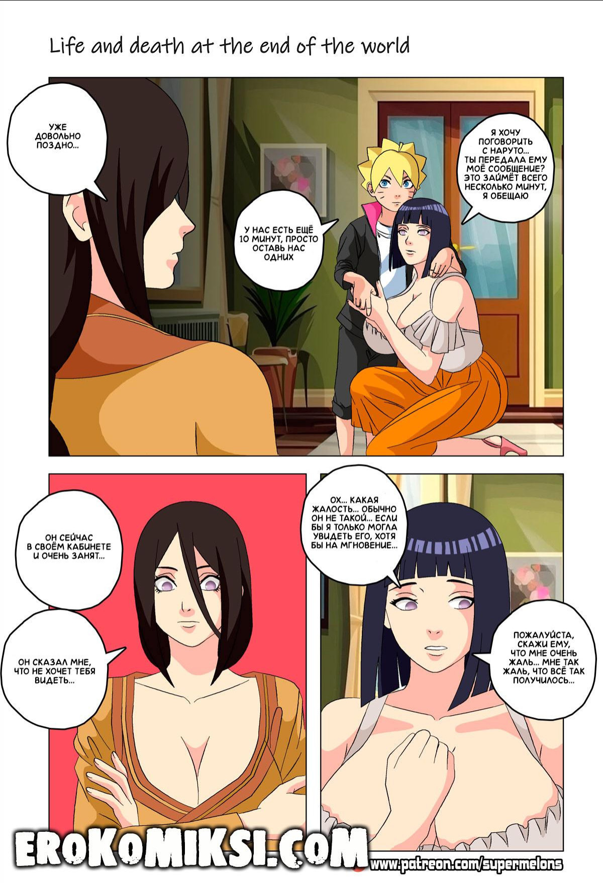 Порно комикс Наруто. Жизнь и смерть на краю света. Став шлюхой, Хината приезжает навестить своих детей и Наруто, однако, ей там совсем не рады и Наруто собирается жениться на Ханаби. Отправившись на поиски очередного мужика, Хината встречает Сакуру, которую жизнь потрепала не меньше и вынудила пойти на панель, чтобы расплатиться с долгами…