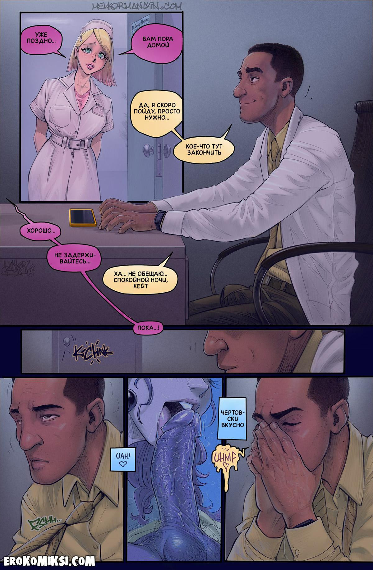 Порно комикс Помешательство. Melkor Mancin. Доктор Хартман устраивается в новую больницу, но из-за сексуальных медсестёр, он совсем не может спокойно работать, и ему постоянно начинает казаться, что все медсёстры тоже хотят его и предлагают, как следует их оттрахать…