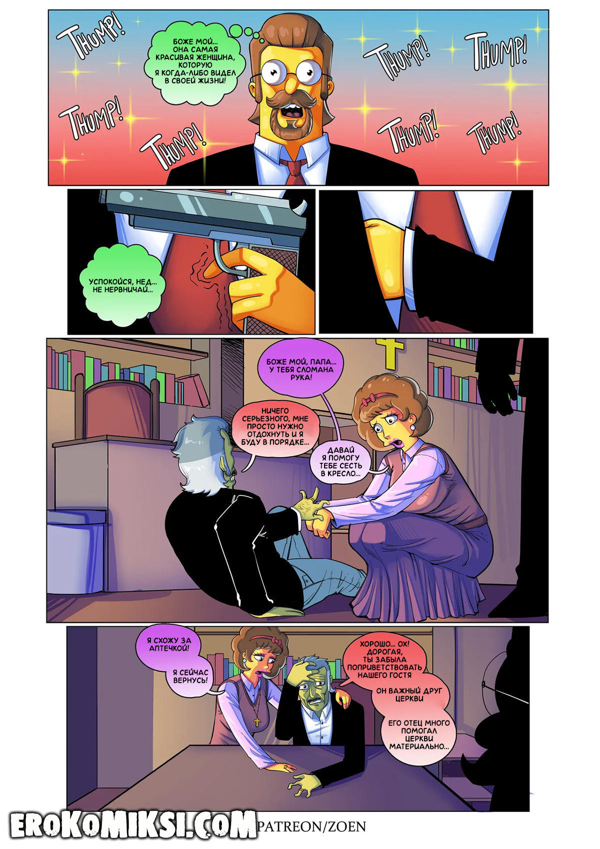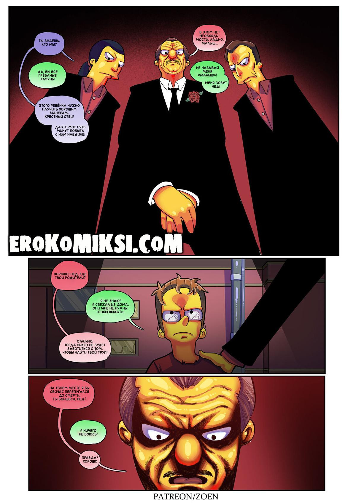 Порно комикс Симпсоны. Плохой Парень. Нед Фландерс не всегда был набожным христианином, любящим мужем и заботливым отцом. Он родился в неблагоприятном районе, был не очень послушным ребёнком и постоянно ссорился с родителями. Однажды, не выдержав, Нед сбежал из дома и стал жить на улице, точнее выживать…Он воровал еду и вещи, чтобы выжить, но однажды, он украл не у тех людей…