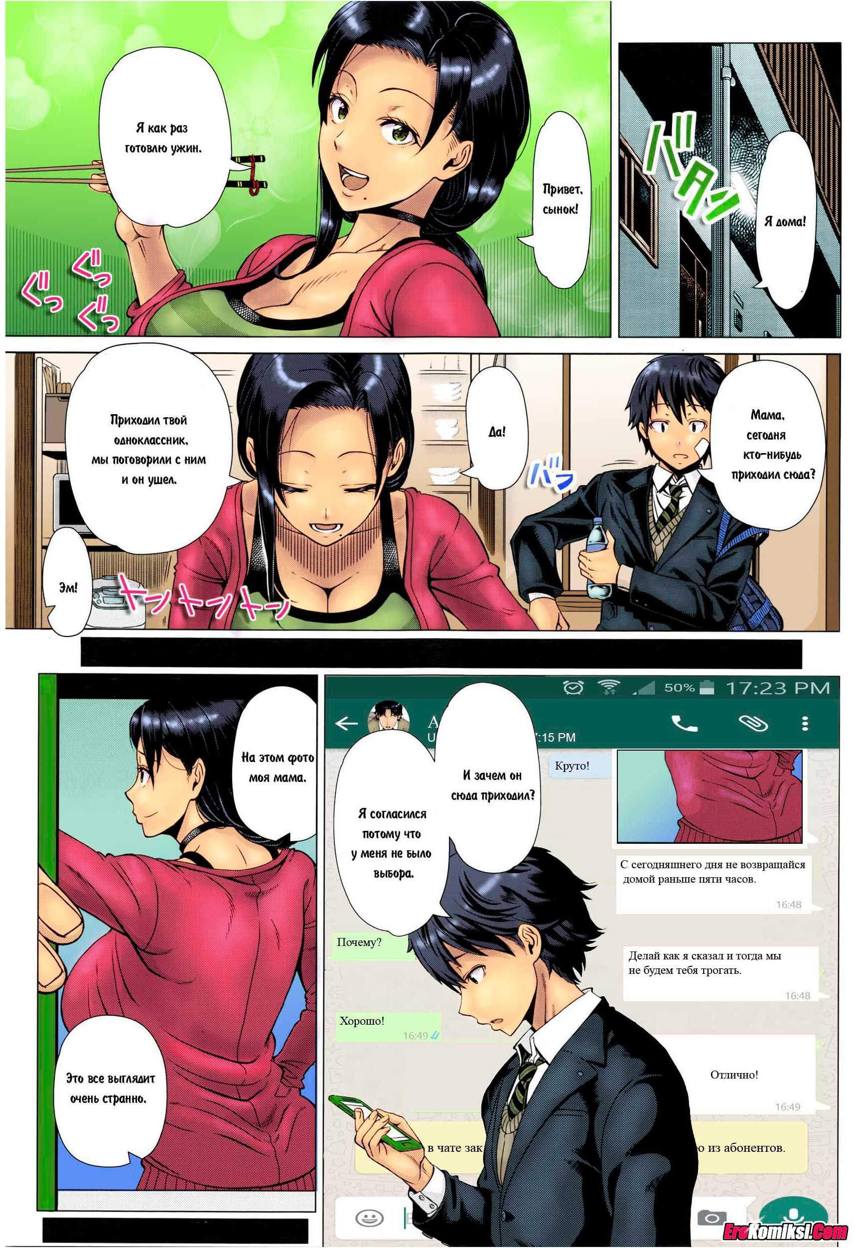 Порно комикс Слабое место Мамочки — Милфы. С некоторых пор Масано стал возвращаться из школы в синяках и ссадинах. А однажды, когда Масано не было дома, к нему домой, где в это время была только мать Масано, пришёл школьный друг Масано, Акира Тогава, и рассказал ей о том, что над Масано, как и над ним, в школе издеваются потому, что они ещё не имели интимного опыта с девушками. Матери Масано стало жалко школьного друга её сына. Помочь ему лишиться девственности женщина не могла из-за нравственных убеждений, а вот для того, чтобы у него появился хоть какой-то сексуальный опыт, зрелая дама могла, например, дать ему потискать её большую грудь, что она и сделала…