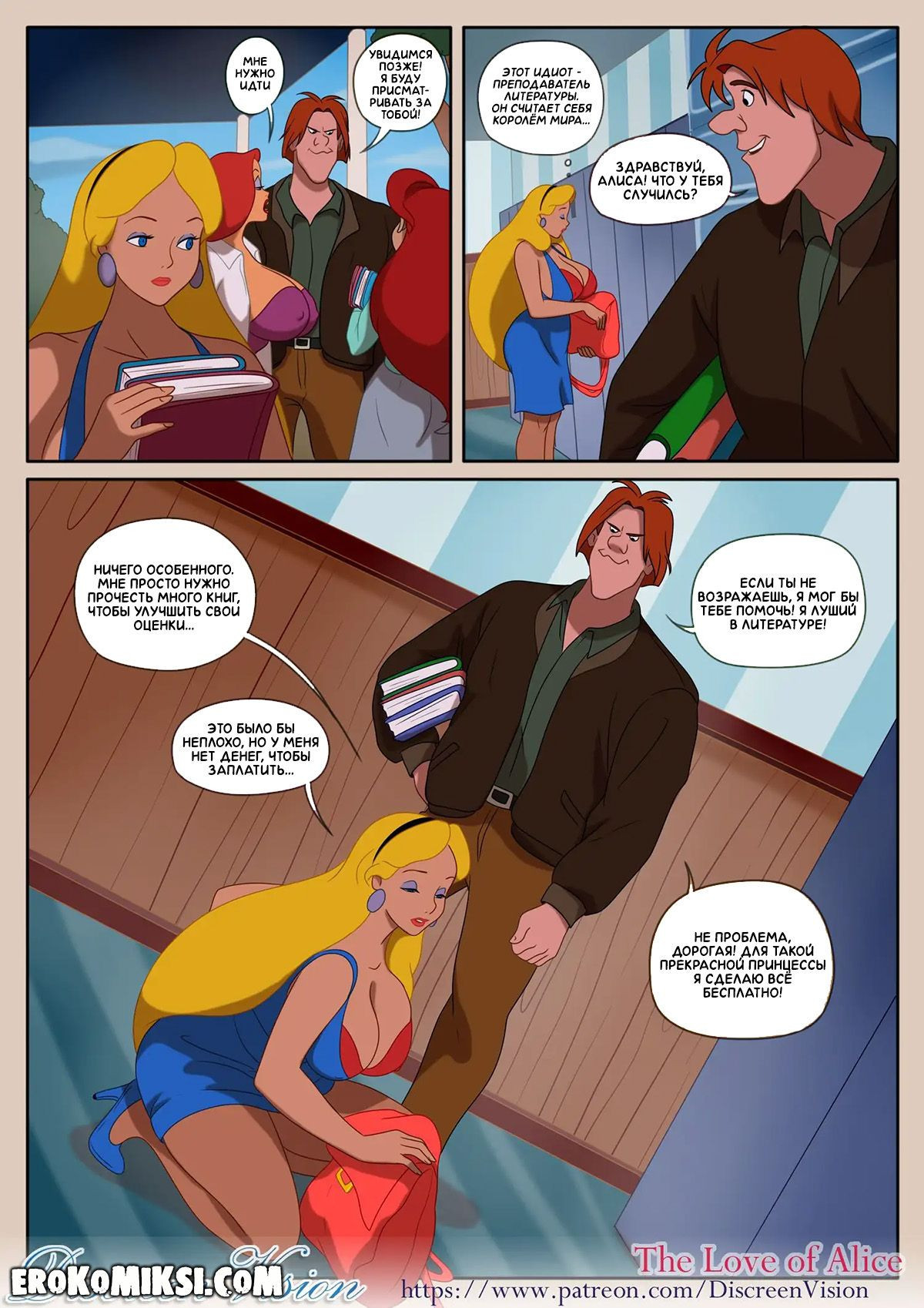 Порно комикс Влюбленность Алисы. Поздно ночью Алиса решила, что очень растолстела за пару месяцев и чтобы не остаться одной навсегда, она кое-что придумала… А что именно, вы можете посмотреть в данном секс комиксе…