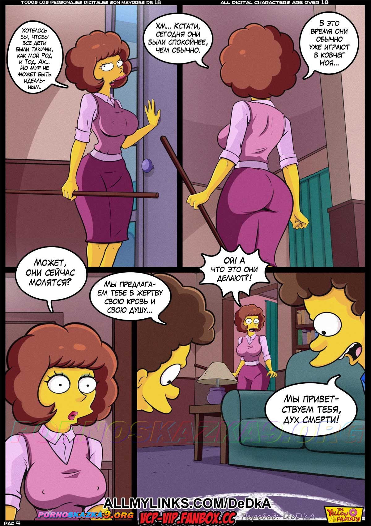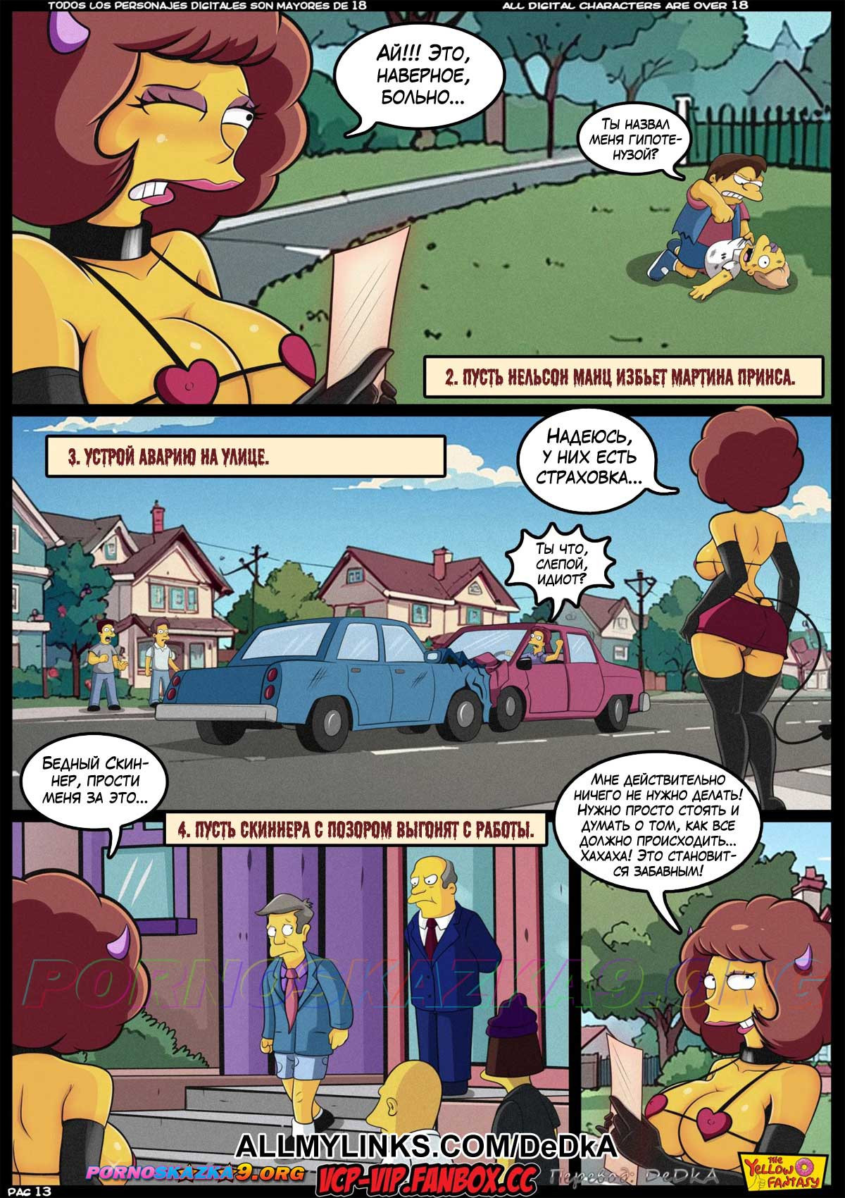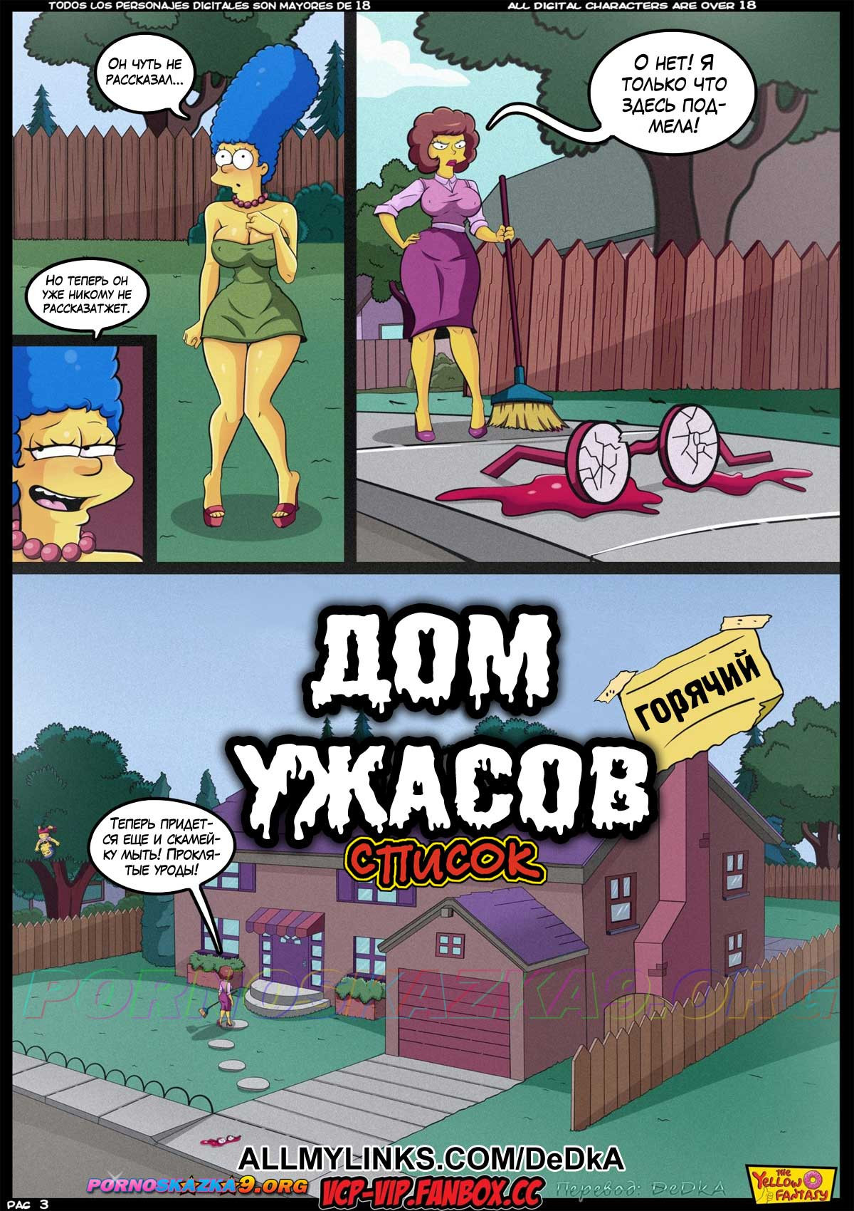 Порно комикс Желтая Фантазия. Список. Симпсоны. Неизвестно как, но Милхаус развел Мардж Симпсон на минет. Он обещал ей никому об этом не рассказывать, но сразу после того, как Милхаус кончил ей в рот, он сразу же побежал хвастаться своим успехом. Побежал, да не добежал — попал под машину…